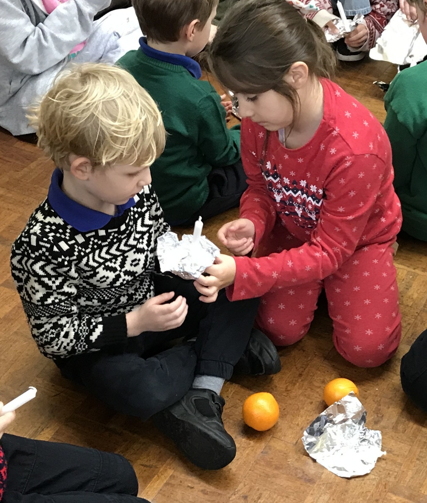 Our children spent the first part of the morning in family groups to make Christingles. Our older children were wonderful, supporting the younger children. At our church service, we saw Jane's fabulous Christingle hat! Our travelling crib returned to church to await the arrival of baby Jesus, and we lit our Christingles. As well as traditional hymns, we rounded the service off with a rendition of 'Merry Christmas Everyone', which the children have learnt Makaton signs for.
