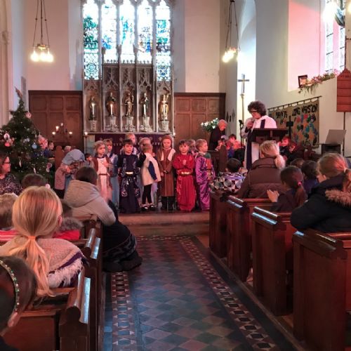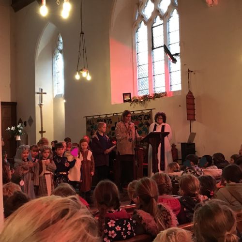 At our Christmas service, pupils and members of staff led readings of the Nativity story, whilst children from classes 1 and 2 created the Nativity tableau.