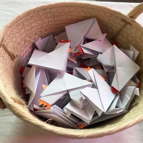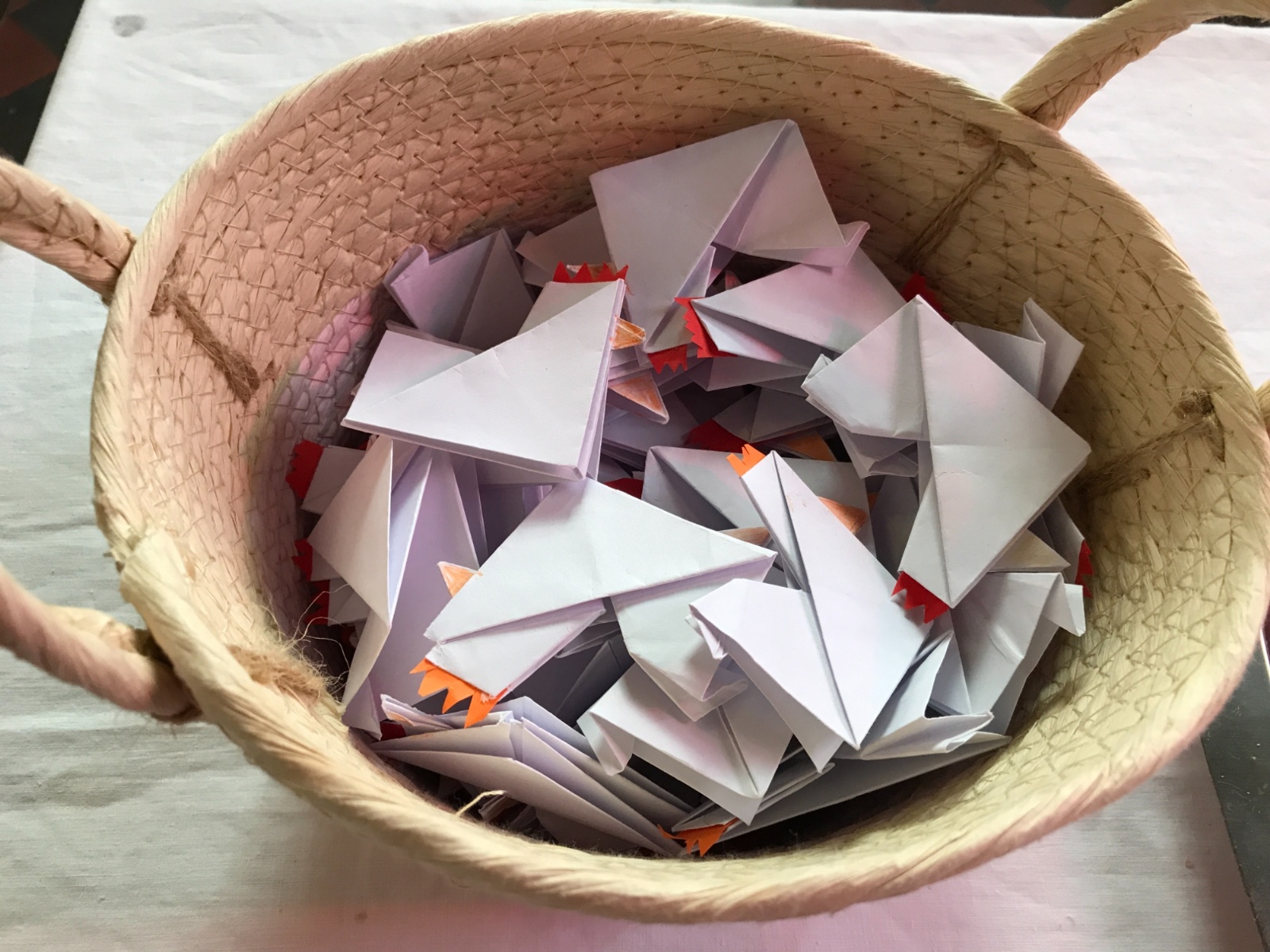 During the service, we added feathers to a hen, with each feather having the name of someone who mothers us, and we gave thanks for all these people. The children also made small origami chickens to give to all our guests at the service, to remind them of our thanks. We finished with a candle lighting prayer, lighting candles for all mothers, for families around the world, and for the family of the church.