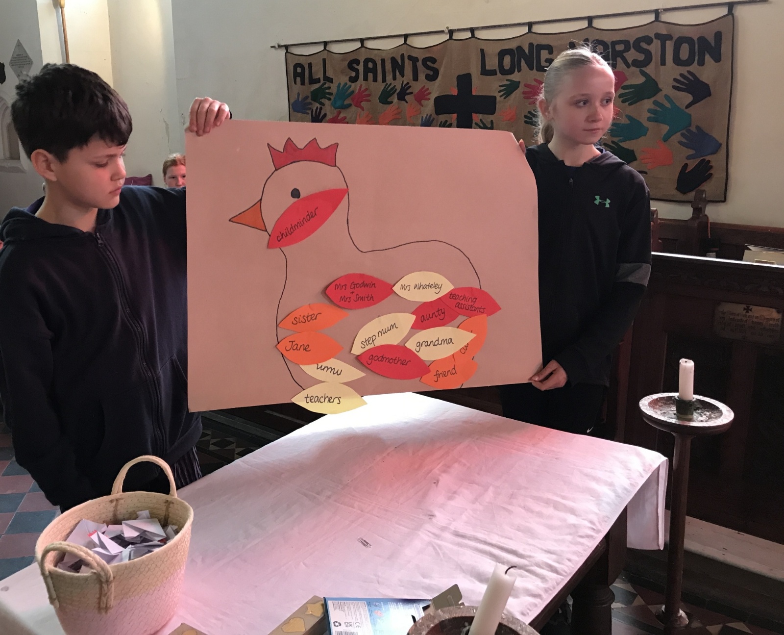 Class 5 worked with Jane to plan and deliver our Mothering Sunday service. They chose Luke 13:34 as their reading: