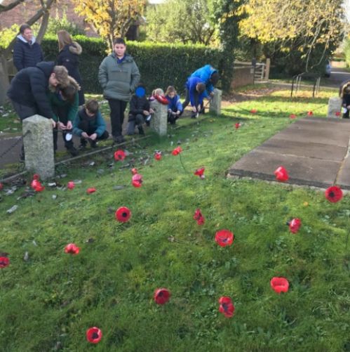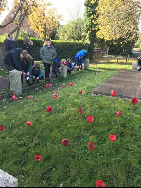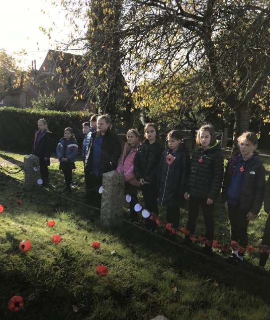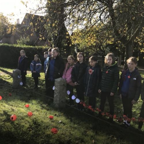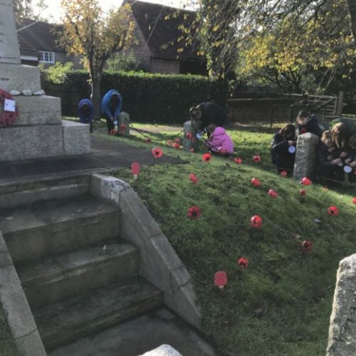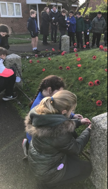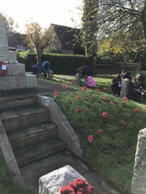 On Remembrance Day, Class 5 visited the war memorial. They tied prayers relating to different coloured poppies to the railings for visitors to read, then had 2 minutes silence in remembrance of those who have lost their lives in conflict.