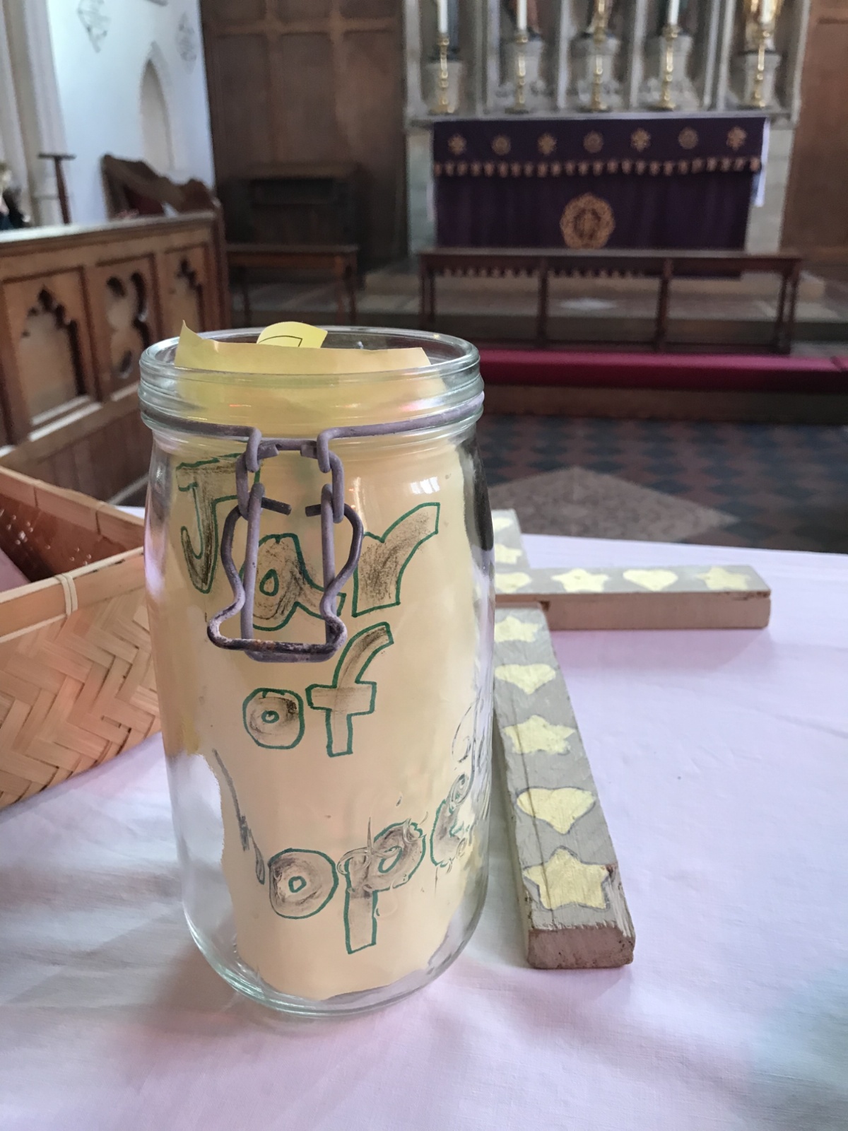 At our Ash Wednesday service, we thought about the theme of Hope. Jane had a 'Jar of Hope' for us and some children placed their hopes for the world, each other and themselves into the jar.