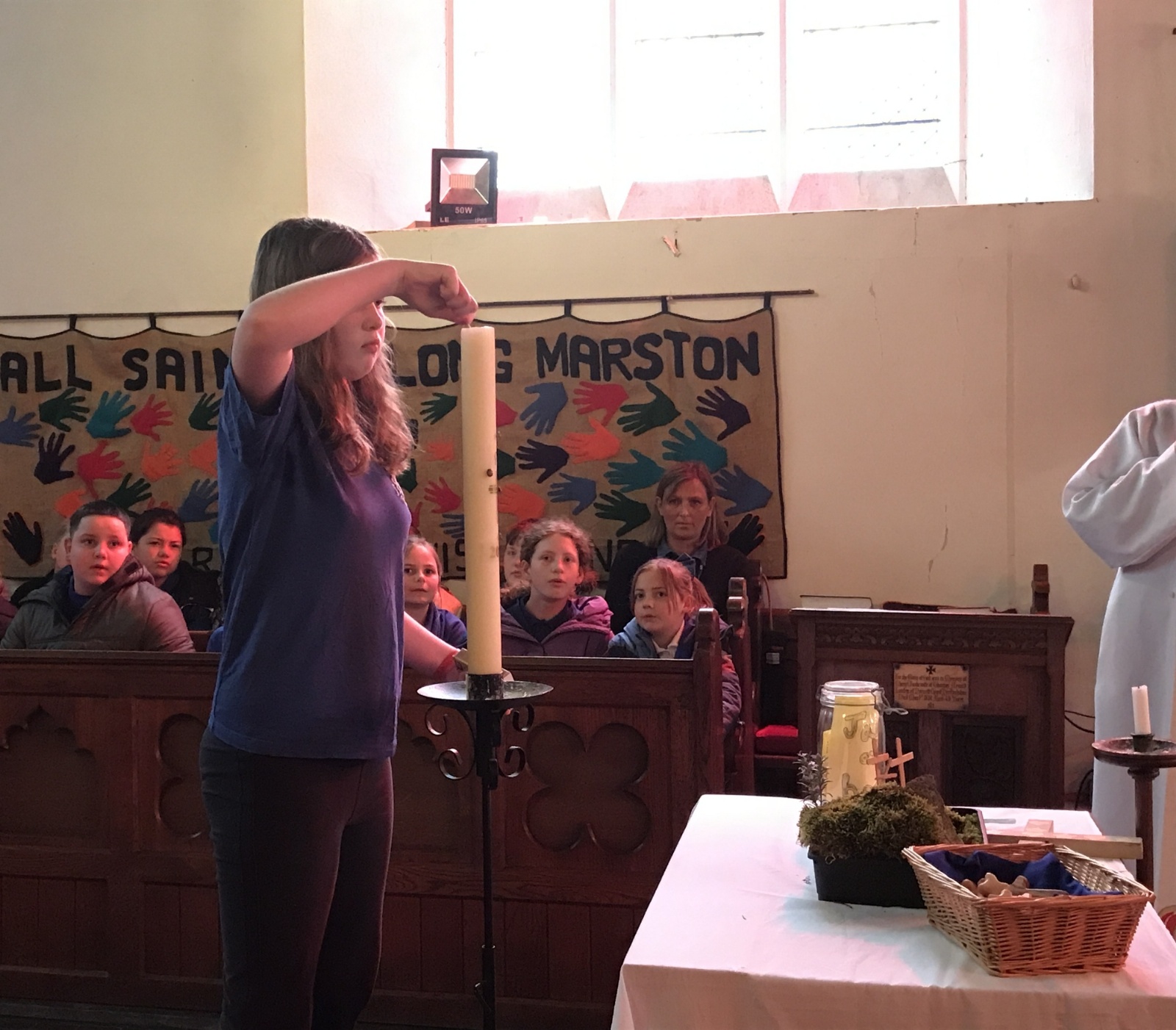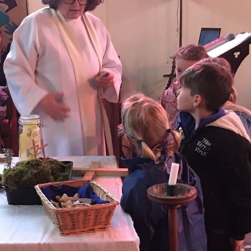 Our Easter service was full of traditions. Jane blessed the new water in the font, and then sprinkled it over everyone! Figures were added to the Easter garden and the Paschal candle was lit. Our Reception children were presented with an olive wood cross to mark the start of their time with us at LMS.